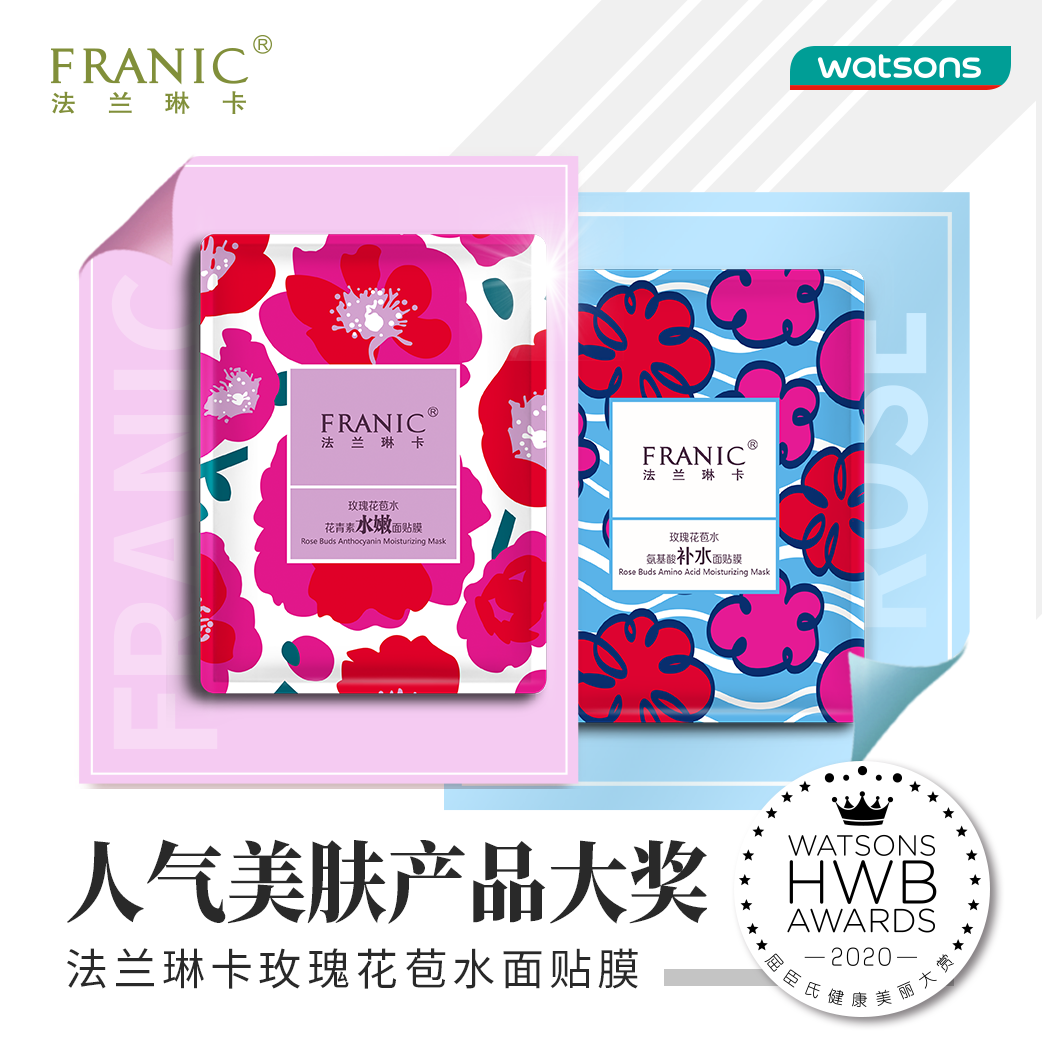 多渠道發(fā)力的法蘭琳卡,在產(chǎn)品打造和營銷方式上,采取度渠定制的方式,為不同渠道量身定制。以屈臣氏渠道為例,法蘭琳卡以更精準(zhǔn)、高效的方式觸達(dá)目標(biāo)消費群,滿足他們對新鮮感、趣味性購物體驗和產(chǎn)品體驗的追求。而此次榮獲“人氣美膚產(chǎn)品大獎”的玫瑰花苞水面膜,自2018年上市至今,已經(jīng)連續(xù)3年成為屈臣氏的人氣爆品。