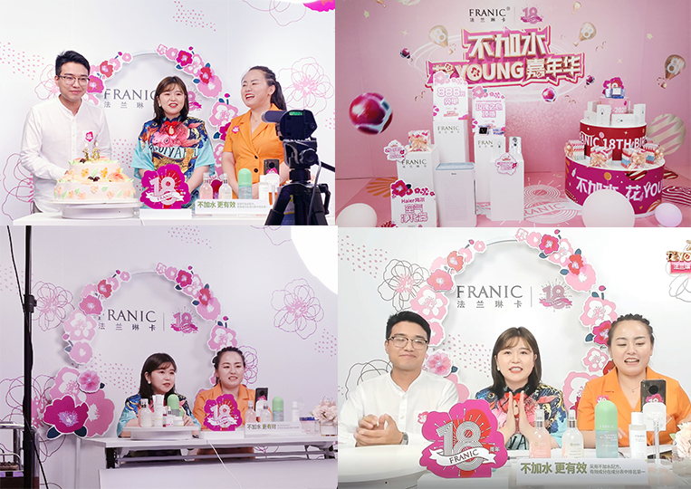 在18周年慶當(dāng)天,法蘭琳卡再次通過直播,與全國各地消費者一同慶祝。同時通過社群營銷,通過歡樂的互動、超多的禮品、優(yōu)質(zhì)的產(chǎn)品,多維度結(jié)合,激活門店流量,加深渠道和線下會員的黏性,以新的互動方式獲得業(yè)績增量。